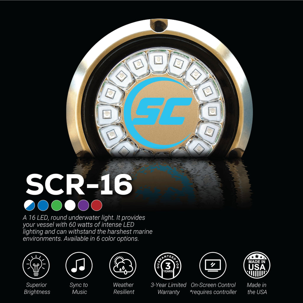 shadow-caster SCR-16 LED Underwater Boat Light - Bimini Blue - Bronze Housing - 60W Suface Mount - Tempered Glass Lens - IP68 Fully Submersible Waterproof
